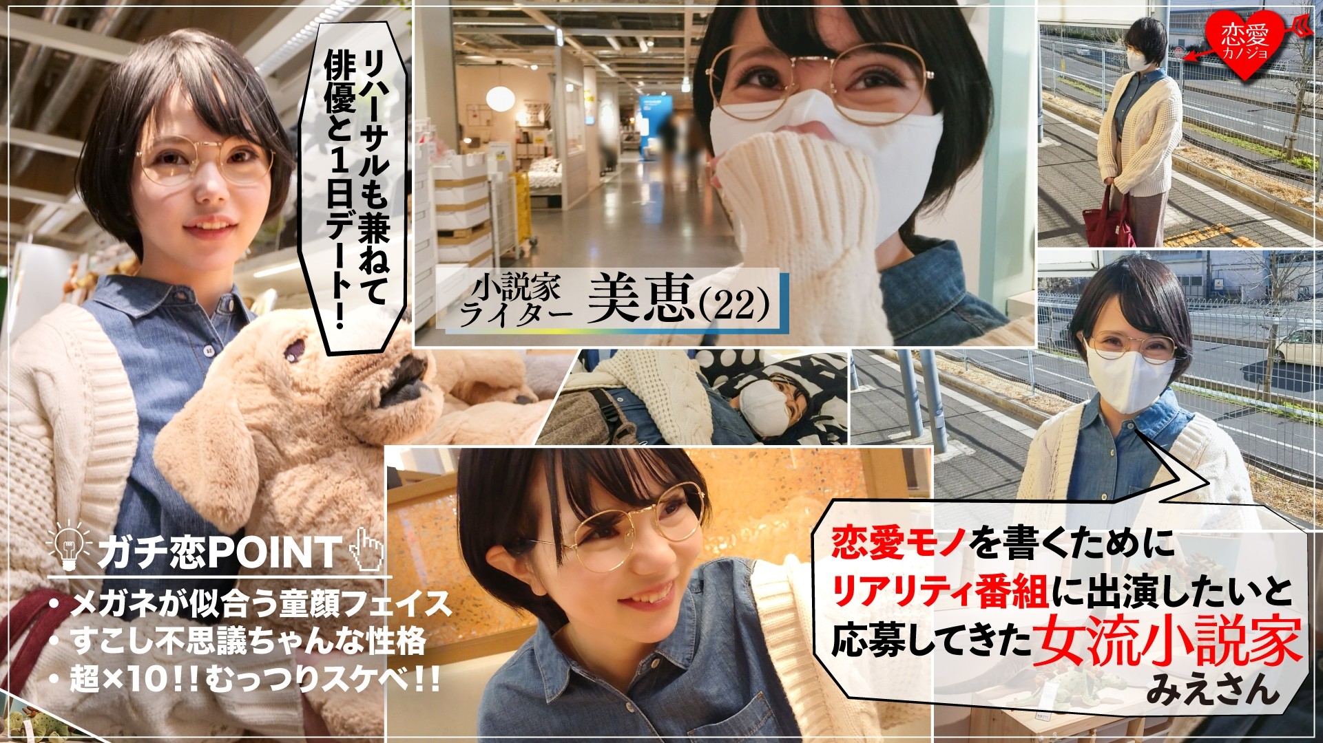 [Jカップ][女性小説家22才]地味メガネな文学少女 官能小説のような喘ぎ声でヨダレ垂らすほどイきまくる 羽交い絞め中出しSEX