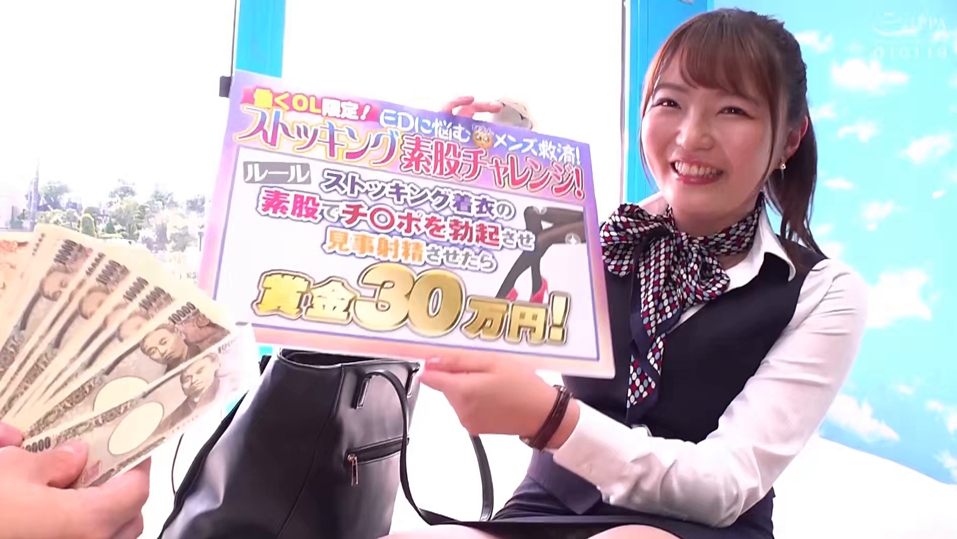 一日中立ちっぱなしで美脚が蒸れたOLが挑戦するガニ股素股チャレンジ!光るストッキングでEDフニャチンを持続可能な勃起でイカせられたら賞金30万円!予想外にガチガチになったデカチンで敏感な膣口を刺激された美人OLはガックガクイキ潮!潮!追撃激ピスで人生初のぴえん中出しも拒めない!撮って出しマジックミラー号~みく編~
